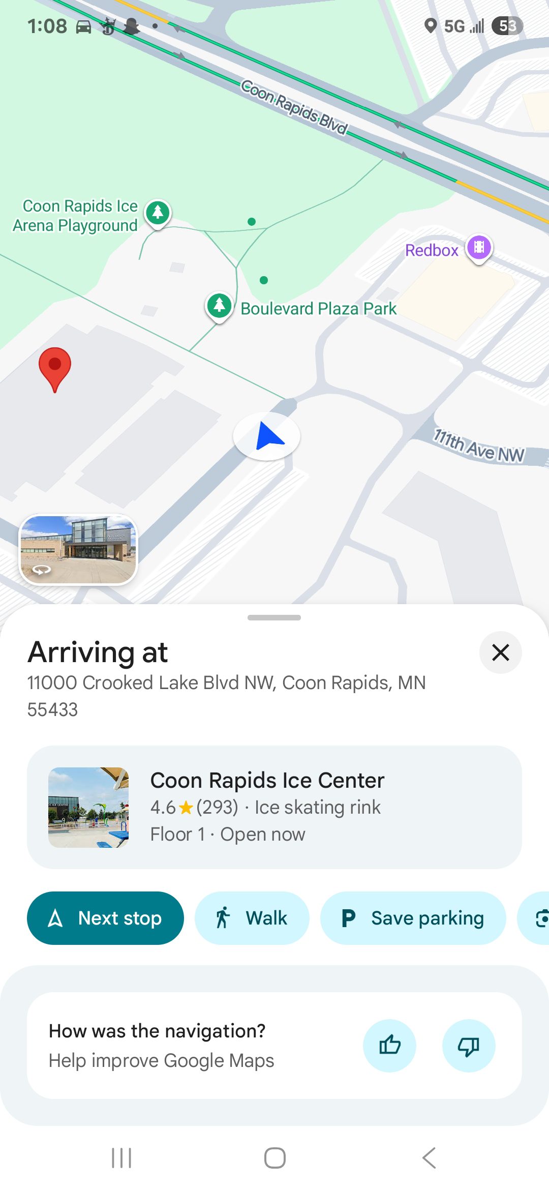 The Coon Rapids Ice Center is a hub for Snowflake Days activity, especially with the “Guns ‘n Hoses” game. I looked all around the exterior of the building, specifically targeting the splash pad area (which is a great summer landmark) and checking every single bench in the vicinity.